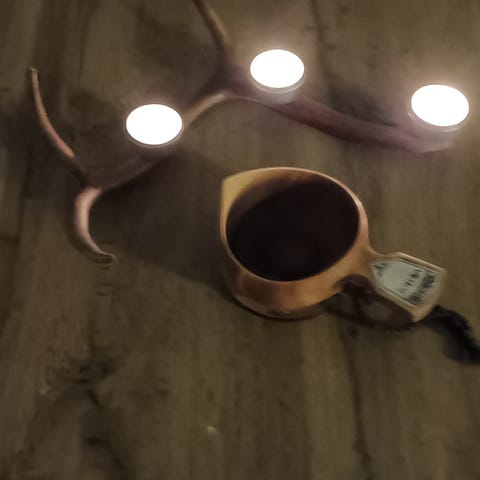 Poronluukahvallinen kynttiläsammutin. Hieno ja lappiaiheinen.