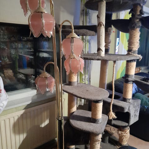 Vaaleanpunainen kattolamppu.
