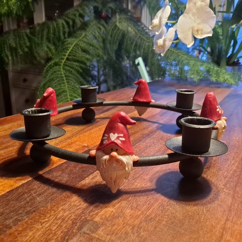 Retro tonttu-kynttilänjalka neljälle kynttilälle
