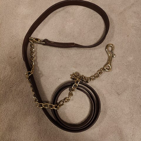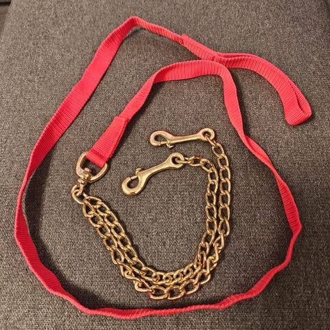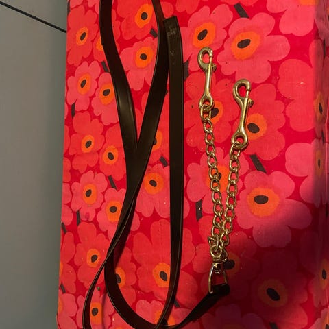 Myyn käyttämättömän nahkaisen riimunnarun ketjulla, punaiset tikkaukset. Hinta 30 euroa sisältäen postikulut.