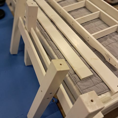 Myydään parvisänky, jonka alla on työpöytä sekä nojatuoli joka toimii myös lisävuoteena.