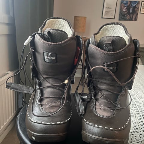 Laadukkaat Burtonin lumilautakengät (Burton on yksi arvostetuimpia lumilautailu kamppeiden valmistajia). Kokomerkintä on 37, kenkien sisämitta on 23.50 cm. Hyväkuntoiset siistit kengät, kaikki lenkit ja nauhat yms. kunnossa. Hinta 85 e