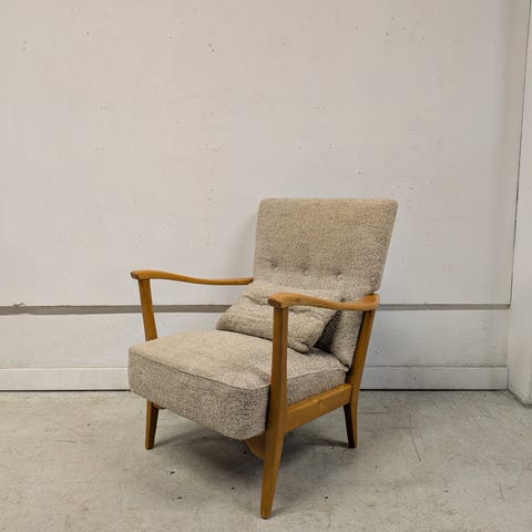 Tyylikäs 50-luvun Enso Dux nojatuoli myytävänä. Kunto ikäisekseen hyvä. Tuoli on purettava malli. Verhoilu ehjä eikä ole hajuja. Runko tukeva.