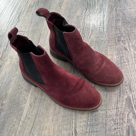 Muuten hyvä kunto, kenkien etuosassa kulumaa ja siellä täällä pieniä jälkiä. Takana vetoketjut.