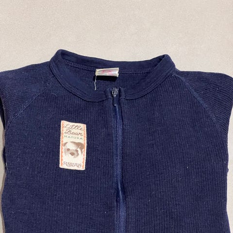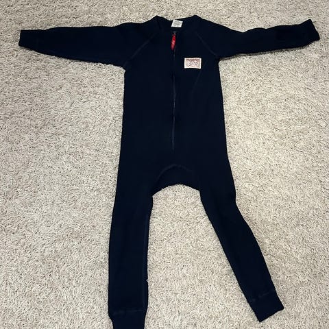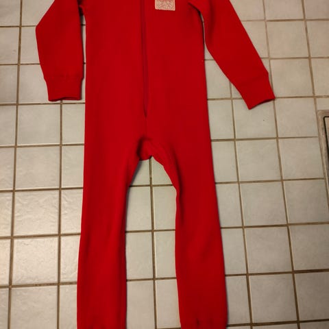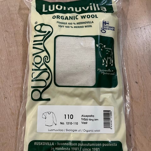 Ruskovilla lasten unisex merinovillahaalari, koko 110. Ei moitittavaa, tietysti pientä nyppyä kulutuskohdissa. Ei pesty, niin vähällä käytöllä.