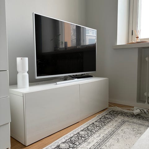 Myydään siisti bestå tv-taso. Runko tammikuvio ja ovet mustat. 120x40x40