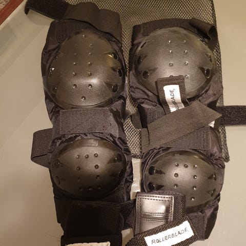 Myynnissä myös rullaluistimet 39 2/3 ja polvi- ja kyynärsuojat.