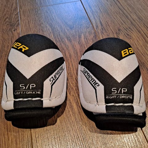 Myydään erittäin hyväkuntoiset Bauer Vapor X100 jääkiekko kyynärsuojat koko Sr. M (1.7-1.8m).