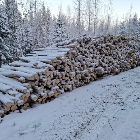 Mäntykuitua 4m pitkää,40pinokuutioo,tehty motolla 12/25