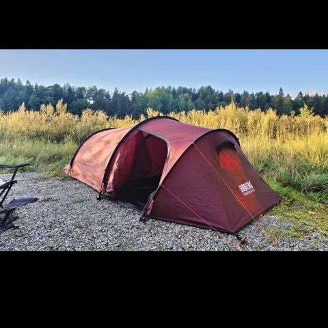 2 hengen tunneliteltta McKinley Aubrac 2 vaelluksille ja retkeilyyn. Oviaukolla pieni absidi. Vedenpitävyys 2000mm katto ja 5000mm lattia. Kevyt ja pieni pakkaus. Hyvässä kunnossa ja siisti.