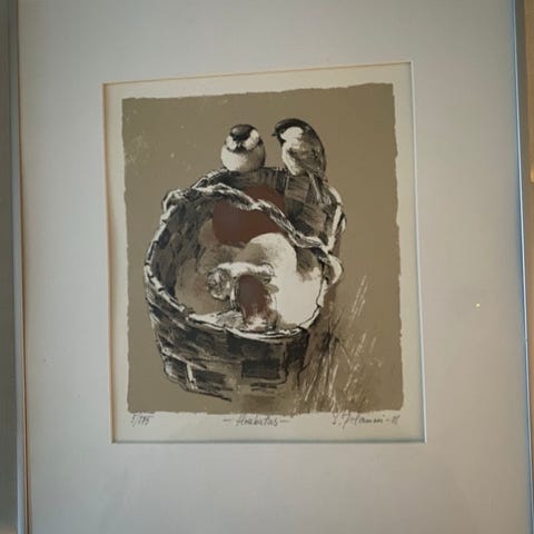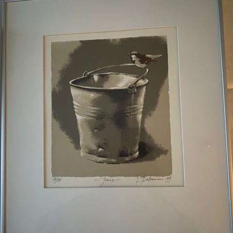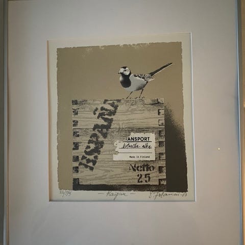 Numeroitu 150/175, signeerattu ja päivätty 1999. Kehyksineen. Koko kehyksen kanssa n. 37,5 cm x 41,5 cm.