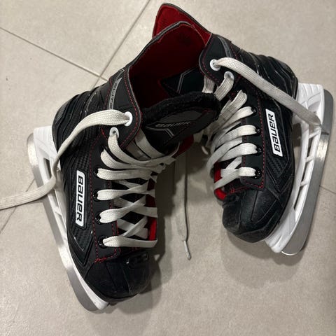 Bauer lasten jääkiekkoluistimet, koko 31 (Bauer Y12). Muutama talvi näillä hokkareilla luisteltu, muuta ovat hyvässä terässä ja uudet nauhat vaihdettu ennenkuin kävivät pieniksi. Valmiit kaukaloon seuraavalle luistelijalle.