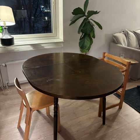 Pyöreä puinen ruokapöytä