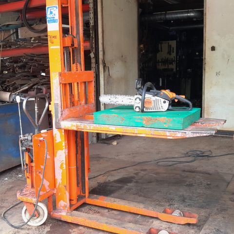 Toimiva pinkkari. Toimii 12V tavallisella auton akulla. Akkua ei ole antaa mukaan. Laturi on kiinteänä. Nostaa 1000kg 2,4m korkealle.
