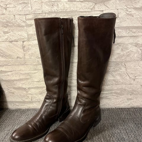 Mustat nahkasaappaat, pienillä kiilakoroilla. Saappaissa somisteena soljet.