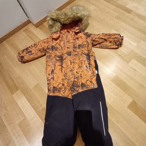 Reiman kahden hiutaleen 92 kokoinen haalari. Pepussa ei kulumaa. Polvet ja pultun sisäreuna pikkusen kulunu. Toisessa pultussa mustassa kohdassa ollut pieni reikä johon laitettu paikka päälle (kuva). Paikka pysynyt hyvin käytössä paikallaan. Kauluksessa nukkaa ja likaa. Eläimetön koti.