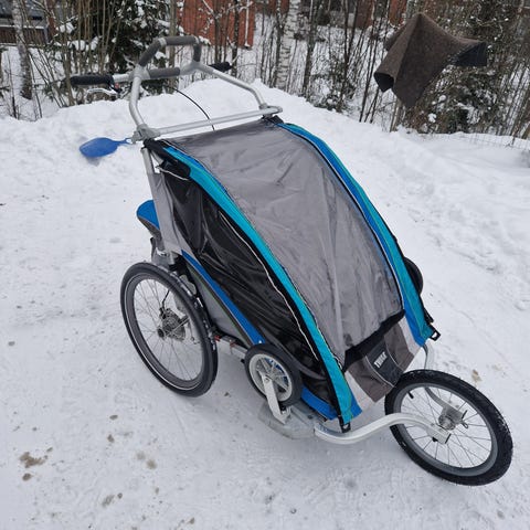 Thule pyöräkärry, Thulen pyöräkärry, Hiihtosetti Thulen pyöräkärryyn, Thule Ski Set, Thule Ski Kit, Thule Cross-Country Skiing Kit, Thule suksisetti, rattaat, lastenvaunut