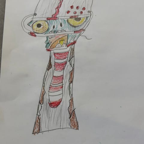 Taulu piirustus, joka esittää lasta istumassa ja leikkimässä kulholla.Piirustuksessa on havaittavissa ajan patinaa ja pieniä vaurioita, kuten kellastumista ja pieniä tahroja. Kehyksessä on myös kulumaa.Signeeraus epäselvä, ei kunnolla näkyvillä.