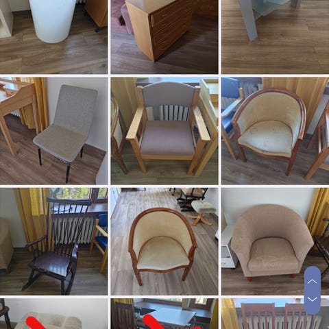 Annetaan pirrtipöytä ja penkit sekä 6kpl puutuoleja. Pirttipöydän pinta kulunut. Ainoastaan nouto Itä-Aure