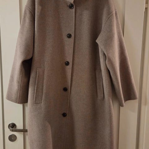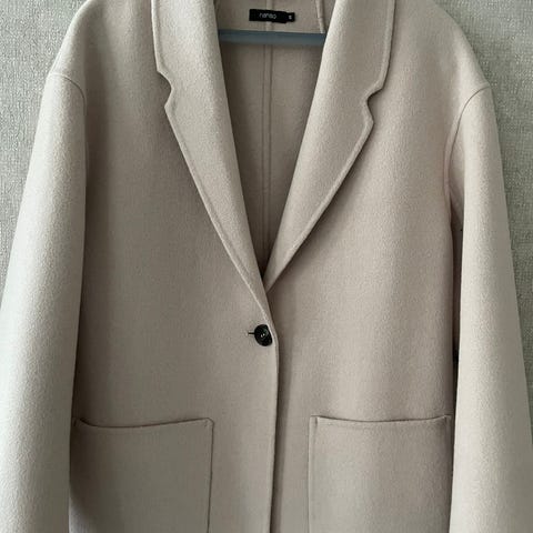 Nanson Ylle, vähän käytetty villakangastakki, koko M, beige väri. Valmistettu 70% villasta ja 30% polyesteristä.