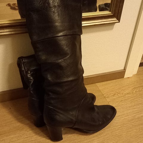 Myynnissä naisten nahka saappaat, koko 39, käytössä oli vain muutama kerta, eli siistit, vetoketjut ok, kunto ok.