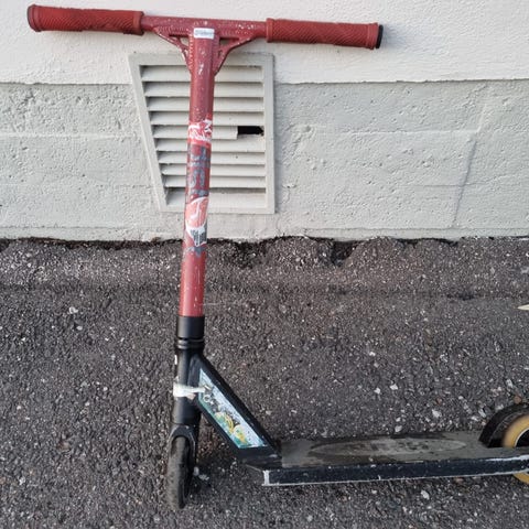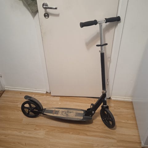 Hyvässä kunnossa oleva leveäpyöräinen skuutti, soveltuu myös hiekkateille ja polkupotkutteluun.