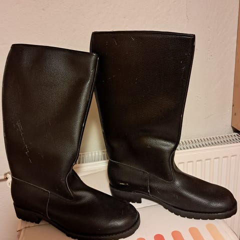 Miesten koon 47 tummanruskeat nahkaiset varsikengät. Kengät ovat aitoa nahkaa ja portugalilaista käsityötä. Kenkien merkki ei ole tiedossa. Vähäisellä käytöllä olleet ja vasemman kengän sivussa olevaa naarmua ja kärkien pientä värin haalistumista lukuunottamatta hyvässä kunnossa.