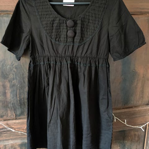 Koola Anna -merkkinen naisten musta, lyhyt puuvillainen mekko, jossa säädettävät ja irroitettavat olkaimet. Takana vetoketju. Kangas on miellyttävää eikä kutistu pesussa. Ostettu uutena, ollut vain vähän käytössä. Oikein hyvässä kunnossa.