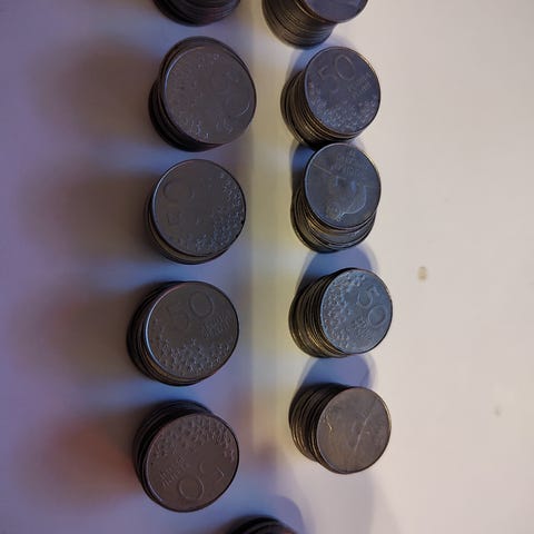 4kpl 50 pennin kolikkoa, vuodet kuvissa.