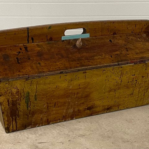 Iso lukittava (Abloy) työkalupakki. Pakki on puusepän käsityötä 9mm vanerista ja puusta. Kestää raskaankin kuorman. Molemmat kannet avattavissa ja lukittavissa, toinen avaimella, toinen sisältä salvalla. Sisällä pientarvikehylly ja ”tasku”.