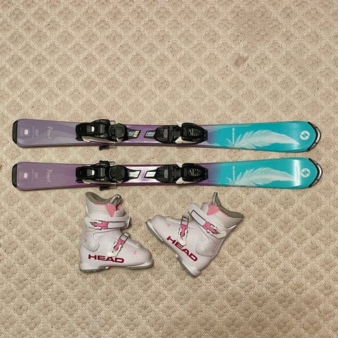 Lasten Tecnopro sukset, Dolomite laskettelumonot ja Tecnopro sauvat. Toimivat hyvin 5-6v tytölle laskettelun harjoitteluun.