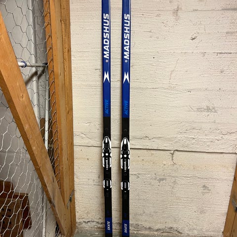 Kahdet Madshus luistelusukset, molemmat 195 cm pituiset sukset, varustettu rottefellan siteillä. Sauvat Star 170 cm. Monot Madshus koko n. 44. Toinen suksipari hyvässä kunnossa, juuri huollettu. Toisen parin pohjat naarmuilla, hyvät kivikelin sukset. Molempien kantavuus luokkaa 90-100 kg