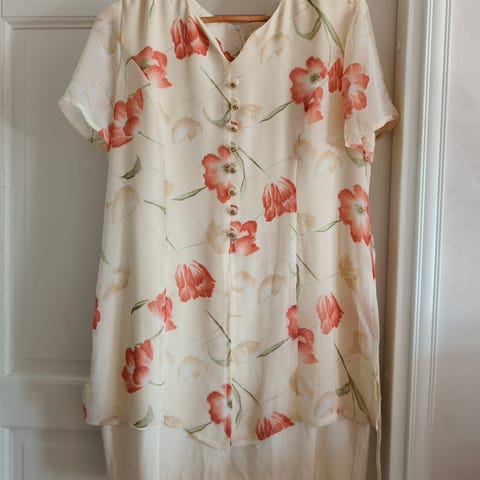 New with tag. Sturdy and good material. Butter Yellow color, short sleeve with pretty flower details. Belt "knots" can be used for adding own belt or just been cut off. Model is 175cm in size S. Slight elastic. Retail price 48 euros. Material tag also in the picture.