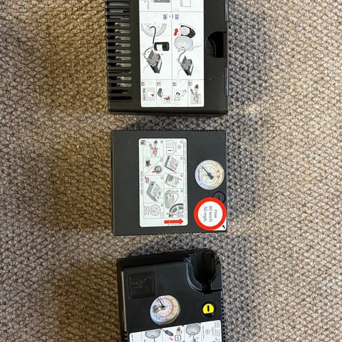12V ilmakompressori, uuden veroinen. Kuljetuslaukun etupikkutaskun veroketju rikkoutunut.