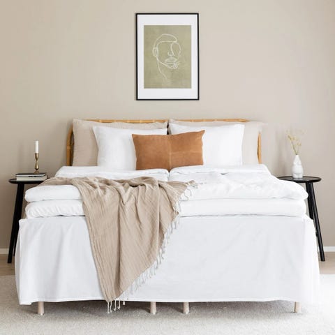 Valkoinen helmalakana 120 cm leveään sänkyyn. 100 % puuvillaa.