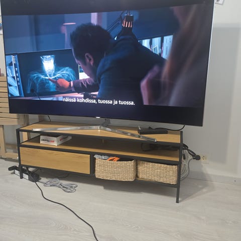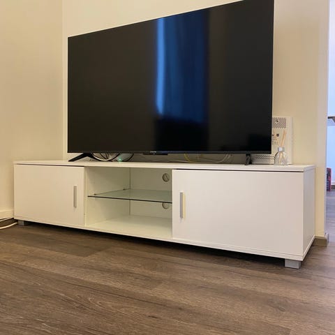 IKEA valkoinen TV-taso ovilla ja laatikoilla
