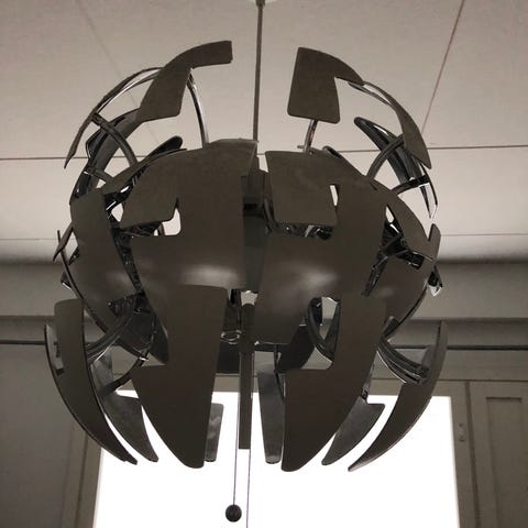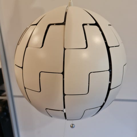 Valkoinen avattava ja hyvin toimiva IKEA PS 2014-valaisin.