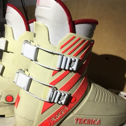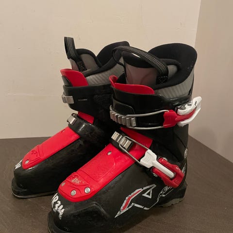 Nordica Team JR lasten laskettelumonot, koko 34. Värit musta ja punainen. Monot on suunniteltu lapsille ja niissä on kolme solkea istuvuuden säätöön. Ehjät, naarmuja hiukan. Vihtavuoresta.