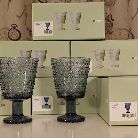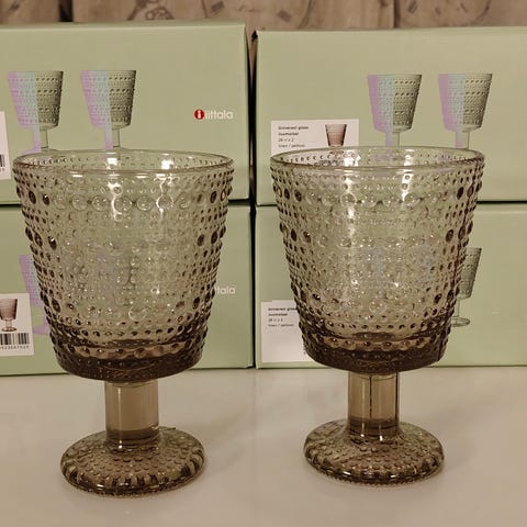 Iittala Kastehelmi jalallinen lasi harmaa