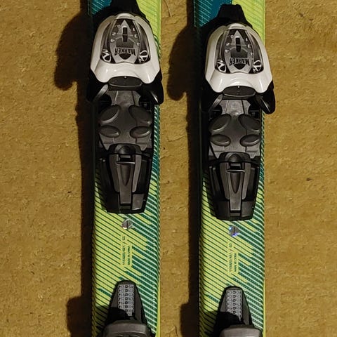 Sukset ovat 120 cm pitkät ja niiden pohjissa on käytössä tulleita pintanaarmuja, mutta ne eivät laskemista haittaa.