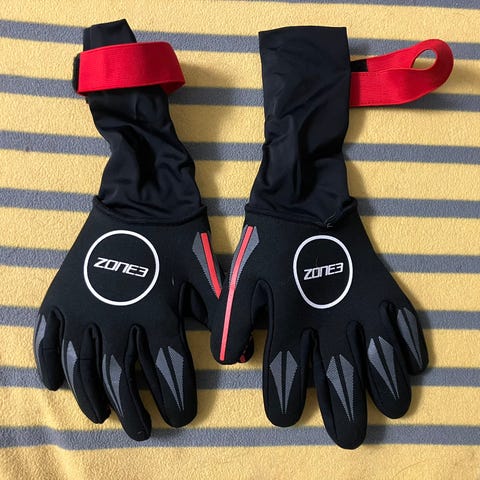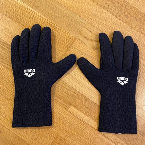 Muutamia kertoja käytössä olleet avantohanskat. Ei taida olla tarkkaa kokoa, mutta mahtuu ainakin L kokoiseen käteen.