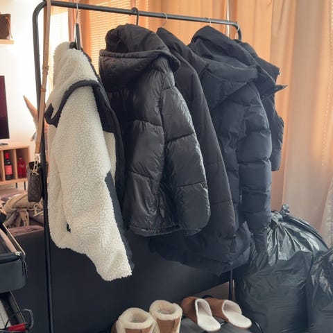 Valkoinen vaaterekki, yksi ala putki irti, en ole kokeillut kiinnittää uudelleen. Korkeutta pystyy säätämään