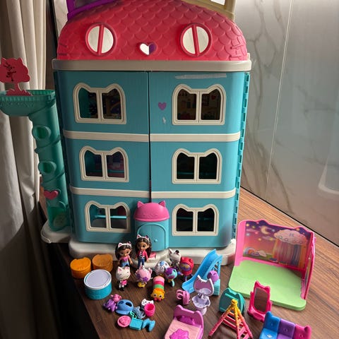 Gabbyn nukketalon hahmosetti, kaikki hahmot tallella. 7 hahmoa, pieni rasia ja peli jotta Gabby pelaa.