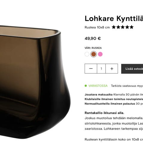 Myyjä ei ole vielä aktivoinut ToriDiiliä. ToriDiili on Torin uusi maksu- ja kuljetuspalvelu, jolla kotiutat torilöydöt nopeasti ja turvallisesti. Lue lisää