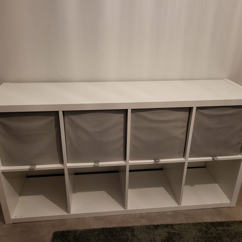 Hylly kasattuna tällä hetkellä. Voi noutaa kasattuna tai voidaan purkaa osiin. Uutena hinta Ikeasta 189€ plus vetimet.