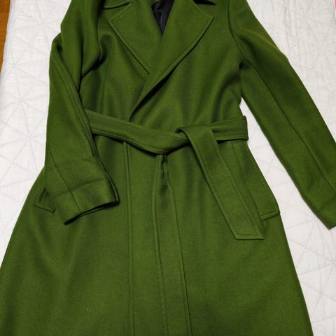 Zara pitkä takki naisille, koko XS. Väri vihreä-ruskea. Materiaalina polyesteri. Takki on pitkä ja sopii erilaisiin sääolosuhteisiin. On pesty pesukoneessa. On tahroja ja yhessä taskussa on reikä.