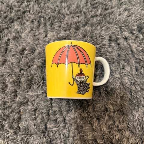 Arabia Muumi muki, jossa purjehtija-aiheinen kuvitus. Materiaali posliinia, väri pääosin sininen ja valkoinen. Sopii astiastoksi tai keräilyesineeksi.