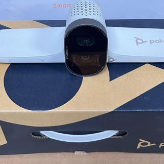 Poly Studio konfferenssilaite kaiuttimilla, mikrofonilla ja laadukkaalla kameralla.
