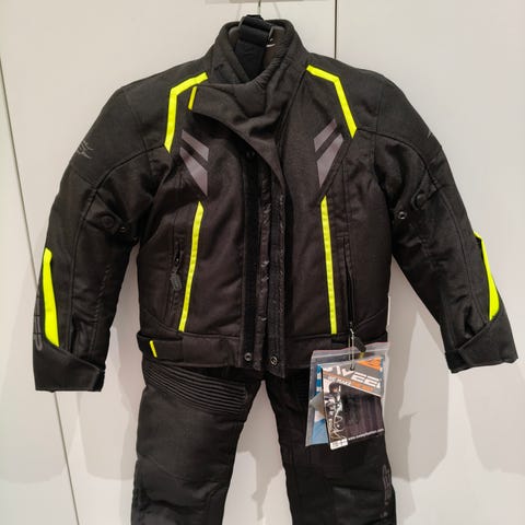 Uusi Sweep Wolwerine 2 lasten moottoripyöräasu musta keltainen koko 130