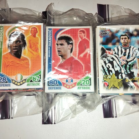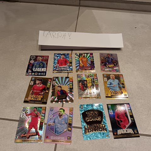 Poika myy kansion jossa yhteensä 413 jalkapallokorttia. Eri merkkisiä, Panini mm. Jossain kortissa voi olla käytön jälkiä, mutta yleisesti ottaen kortit ovat todella siistit. Suurin osa korteista ostettu 2024-2025. Myydään yhtenä settinä.